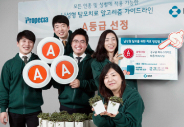 이번 행사는 프로페시아가 최근 아시아 컨센서스 위원회가 발표한 남성형 탈모 치료 알고리즘 가이드라인에서 모든 남성형 탈모 진행 단계에서 1차 치료로 권장되며, 미녹시딜 제제와 함께 가장 높은 권장 등급인 A등급을 받아 이를 축하하기 위해 기획됐다. 최근 발표된 남성형 탈모치료 알고리즘 가이드라인은 한국, 중국, 싱가포르 등을 포함한 아시아 7개국 연구진이 참여한 아시아 컨센서스 위원회가 아시아 남성형 탈모치료에 관한 경험을 바탕으로 남성형 탈모 진행 단계에 따라 남성형 탈모 유형을 분류, 각 단계별로 적합한 치료법을 체계적으로 제시한 남성형 탈모치료 알고리즘 가이드라인이다. BASP 탈모 분류법을 바탕으로 해 인종과 성별에 관계없이 적용 가능하다. 한국MSD 프로페시아팀 김현 본부장은 “일본·유럽 가이드라인에 이어 아시아 컨센선스 위원회가 발표한 인종∙성별을 포괄하는 새로운 남성형 탈모치료 알고리즘 가이드라인에서 프로페시아(피나스테리드 1㎎)가 남성형 탈모치료에 강력하게 추천되는 A등급 치료제로 선정된 것을 축하하며 이번 행사를 기획했다”며 “앞으로도 프로페시아팀은 보다 많은 남성형 탈모 남성들이 의료진과의 상담 하에 필요한 경우 지속적인 탈모치료를 받을 수 있도록 탈모치료 및 약물복용에 대한 환자들의 인식 증진에 힘쓸 것이다”라고 말했다. |