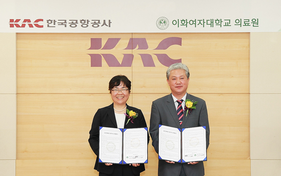 이화여자대학교 의료원이 김포국제공항 내 공항의료센터를 운영하게 됐다. 의료원은 지난 24일 강서구 공항동 한국공항공사 서울지역본부 중회의실에서 ‘김포국제공항 공항의료센터 운영 협정 체결식’을 가졌다. 양 기관은 이번 협정에 따라 올해 7월 김포국제공항 국제선 여객터미널 내에 ‘이화여대 부설 김포국제공항 공항의료센터’를 개소하며, 이화의료원은 진료 인력을 파견하고 한국공항공사 서울지역본부는 시설 및 부대 비품을 지원한다. 체결식에는 이순남 의료원장, 조영주 기획조정실장 등 의료원 관계자들과 정세영 한국공항공사 서울지역본부장, 남흥섭 운영단장, 박종화 시설단장 등 한국공항공사 서울지역본부 관계자들이 참석했다. 의료원 관계자는 "새로 개설하는 ‘이화여자대학교 부설 김포국제'공항 의료센터’는 연중무휴로 운영되며 공항 이용객 및 상주 직원에게 의료 서비스를 제공할 것"이라며 "센터 의료진은 항공기 사고 등 재난으로 인한 인명구조 활동에도 참여할 예정"이라고 말했다. |