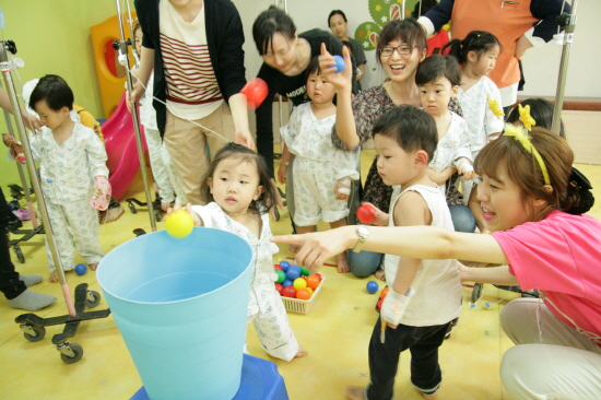 간호부 소아병동이 주최한 이번 행사는 병동에서 어린이날을 맞은 소아환자들을 위로하고 잠시나마 아픔을 잊고 즐거움을 선사하기 위해 마련됐다. 행사는 한림대강남성심병원 음악동아리의 통기타 노래 공연과 소아병동 간호사들의 재미있는 율동 따라하기, 미니 볼 집어넣기, 알쏭달쏭 퀴즈게임, 페이스페인팅, 사탕메달 및 선물 증정 등의 다채로운 공연으로 꾸며졌다. 성태정 소아청소년과장은 “어린이날을 맞아 소아병동 간호사들이 소아환자들의 쾌유를 바라는 마음으로 정성스레 행사를 준비했다”며 “하루 빨리 건강을 되찾아 퇴원해 행복하게 지내길 바란다”고 말했다. |
