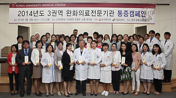 고대구로병원, 서울성모병원을 비롯해 총 8개의 서울 및 경기 서남권역 완화의료전문기관 의료진과 자원봉사자들은 지난 19일 고대구로병원 암병원에서 캠페인을 진행했다. 이번 캠페인에서는 통증관리에 대한 전반적인 교육과 심도 있는 논의가 이뤄졌다. 고대구로병원 김정은 교수와 아주대병원 이현우 교수가 강사로 나서 약물/비약물 치료요법 등을 소개하고, 안양샘병원 전인치유교육훈련원장 김도봉 목사의 영적 및 전인치유에 대한 강연도 이어졌다. 이어서 각 병원 별 진행되는 완화의료 서비스에 대한 정보를 공유할 수 있는 시간도 가졌다. 최윤선 고대구로병원 완화의료센터장은 “의료진들이 암 환자의 통증을 확인하고 정기적으로 모니터링 하는 등 적극적인 통증관리가 중요하다”며, “이번 캠페인이 의료진들의 통증조절이 활성화되는 계기가 될 것”이라고 강조했다. 백세현 고대구로병원장은 “이번 캠페인을 통해 통증으로 고통 받는 암 환자들의 삶을 질을 높일 뿐만 아니라 나아가 환자들이 마음까지 위안 받을 수 있도록, 다양한 통증 관리 지식과 경험을 공유하는 의미 있는 시간이 되길 바란다”고 말했다. 한편, 이번 행사는 보건복지부가 주최하는 ‘통증, 참지 말고 말씀하세요’ 캠페인의 일환으로 매년 암 환자의 삶의 질 및 치료효과 향상을 위해 진행되고 있다. |