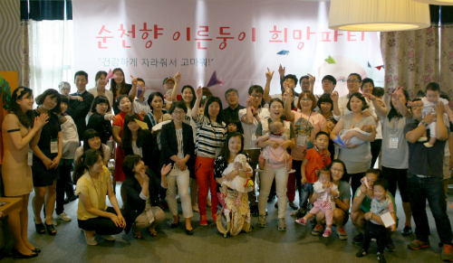 이른둥이란 미숙아의 한글 새 이름이다. 파티는 병원이 운영하고 있는 신생아집중치료센터에서 퇴원한 이른둥이들의 건강을 확인하고, 앞으로의 성장과 발달을 돕기 위해 마련됐다. 파티에는 22명의 이른둥이와 가족들이 참여했으며 건강강좌, 육아경험 공유, 기념사진 촬영, 희망 종이비행기 날리기 등 다채로운 프로그램이 이어졌다. 병원은 파티 중 깜짝 돌잔치도 벌였다. 주인공은 심00 아가(충남 태안군). 23주 3일 608g의 이른둥이로 태어나 행사 며칠 전 첫 돌을 맞이한 아가는 또 한 번 큰 축복을 받았다. 병원은 이날 참석한 가족 모두에게 아가의 발도장이 새겨진 머그컵과 신생아타월, 피부관리용품 등을 선물했다. 2011년 보건복지부로부터 충청지역 거점센터로 지정된 순천향대천안병원 신생아집중치료센터는 전문 의료진과 최첨단 의료장비를 갖추고 중등도별 세분화된 치료로 수많은 지역 신생아들의 건강과 생명을 지켜오고 있다. |