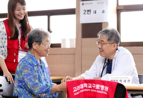 고려대 구로병원이 지난 2년간 전국 농촌 및 오지를 찾아 펼쳤던 인술을 올해도 다시 이어간다. 구로병원은 내분비내과, 가정의학과, 감염내과, 정형외과를 포함한 50여명의 의료봉사단을 파견해 지난 17일부터 20일까지 나흘간 포천, 연천, 파주 지역 등을 돌며 본격적인 의료지원활동을 펼쳤다. 봉사단은 상담창구와 각 진료과별로 진료소를 마련하고, 주사실, 심전도, 혈액 및 소변검사소, X레이 검진차량, 약국 등을 차리는 등 각종 검사장비와 약품들로 마을 내 작은 병원을 세우고 진료를 이어갔다. 이와 함께 몸이 불편하신 어르신들이 이동이 편하도록 동선을 최적화하고 물품을 적재적소에 배치했다. X레이 이동차량에서 촬영한 의료영상을 의료진이 노트북을 통해 바로 보고 판독할 수 있을 만큼 시스템도 완벽하게 갖췄다. 이른 아침부터 진료를 받기 위해 찾은 농민들의 행렬도 이어졌다. 의료봉사단원들은 구슬땀을 흘리며 농민 한 분 한 분을 환한 웃음으로 맞았다. 나흘간 검사 및 진료받은 농민수만 800여명에 이르렀지만 꼼꼼한 진료로 호응이 매우 높았다. 진료받은 한 어르신은 "가끔 외지 병원에서 진료봉사오긴 하지만 왠지 형식적인 것 같아 마냥 좋은 기억만은 아니였다. 이렇게 큰 병원에서 원장님과 교수진까지 오셔서 꼼꼼히 진료해주시고 친절하게 설명해주시니 몸 둘 바를 모르겠다"며 연신 감사를 표했다. 봉사활동에는 병원장인 백세현 당뇨센터장을 필두로 김선미 가정의학과장, 박광원 정형외과 교수 등 주요 의료진도 함께하며 힘을 보탰다. 백세현 원장은 진료실을 찾은 어르신의 손을 일일이 잡으며 특유의 살가운 태도로 아픈 곳을 살피는 것은 물론 봉사단원들을 격려하며 진료를 이어갔다. 백 원장은 "몸과 마음의 아픈 곳을 보듬는 것은 물론 어르신과 눈을 마주치고 공감과 대화를 나누는 것이 매우 중요하다고 생각한다. 미력하나마 구로병원의 농촌을 위한 크고 작은 마음과 노력들이 어르신들의 건강과 즐거운 여생에 조금이나마 보탬이 되었으면 하는 바람이다"라고 말했다. 김선미 가정의학과장은 "봉사에 참여해 어르신들을 직접 뵙고 진료하니 감회가 남달랐다. 반갑게 맞아주시고 말 한마디에 고마움을 표해주시니 오히려 우리가 받는 느낌이였다. 앞으로도 저를 비롯한 의료진들이 더욱 적극적으로 참여하고 지원할 수 있도록 노력할 것"이라고 전했다. 한편, 구로병원은 이번 농촌사랑 의료지원을 위해 자발적으로 의료봉사활동에 지원한 200여명의 교직원으로 대규모 자원봉사단을 특별 편성했다. 오는 10월까지 5개월간 경기도, 전라북도, 강원도 등 총 14개 의료취약지역을 직접 찾아 의료혜택을 받기 어려운 독거노인, 조손가정, 다문화가정을 비롯해 많은 농민들의 건강을 살필 계획이다. |