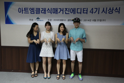 ‘아트엠 클래식 매거진’은 현대약품의 사회공헌활동인 ‘아트엠콘서트’를 비롯한 클래식 공연과 아티스트를 소개하는 온라인 매거진으로 아트엠 클래식 매거진 에디터는 대학생 또는 일반인들이 클래식 공연 리뷰와 유명 아티스트 인터뷰 등 아트엠 클래식 매거진 콘텐츠 제작에 직접 참여하는 프로그램이다. 박수윤 씨(요가강사), 정원석 군(국민대 연극영화과), 한채윤 양(한예종 무용이론과), 이봄 양(중앙대 신문방송학과) 등으로 구성된4기 에디터들은 올 상반기 동안 90회에 달하는 클래식 공연 취재 및 국내외 아티스트 인터뷰 진행을 통해 일반인들에게 클래식을 알기 쉽게 소개하는 교량의 역할을 수행했다. 이날 수료식에 참석한 박수윤 에디터는 “아트엠 클래식 매거진 에디터 활동을 통해 가장 좋았던 점은 인터뷰를 진행하면서 아티스트와 직접 교감할 수 있는 기회를 얻은 것”이라며, “특히 아티스트들로부터 인터뷰 결과물을 보고 만족했다는 말을 들었을 때 큰 보람을 느꼈다”고 소감을 밝혔다. 아트엠클래식매거진 에디터들이 만든 클래식 콘텐츠는 아트엠콘서트 홈페이지(www.artmconcert.com)를 비롯해 네이버 tv캐스트, 다음 tv팟, 유튜브, 페이스북 등 다수의 온라인 채널을 통해 무료로 확인 할 수 있다. 현대약품 관계자는 “감각적이고 대중과의 소통에 능한 젊은 대학생 에디터들의 참여를 통해 쉬우면서도 차별화된 클래식 콘텐츠를 제공할 수 있었다”며, “앞으로도 일반인들이 이해하기 쉬운 공연 리뷰와 아티스트 인터뷰 등 다양한 클래식 콘텐츠 제작을 통해 국내 클래식의 대중화에 기여하겠다”고 밝혔다. |