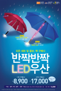 롯데리아는 8일부터 세트(콤보, 팩 포함) 메뉴를 주문하는 고객들에게 LED 우산을 8900원에 할인 판매한다. 세트 메뉴 한 개를 구입하는 고객은 최대 2개까지 구매가 가능하다. LED 우산 1개는 8900원, 2개는 1만7000원에 구매할 수 있다. 단, 별도로 판매되는 LED 우산 금액은 개당 1만4000원이다. LED 우산은 유아용과 성인용 두 종류이며 검정, 파랑, 와인 등 세 가지 색상으로 구성된다. 롯데리아 관계자는 “이번 LED 우산 할인판매는 장마철을 맞아 고객들에게 이색 아이템을 선사하고자 마련됐다”며 “롯데리아 세트 메뉴도 즐기고 저렴한 가격에 LED 우산을 구매해 색다른 장마철을 보내시길 바란다”고 밝혔다. |