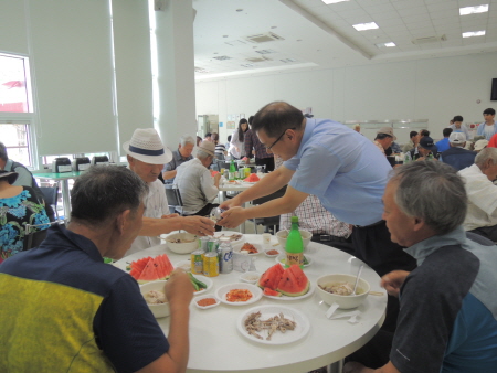 이번 행사는 2009년부터 매년 정기적으로 진행되어온 행사로서 삼계탕, 막걸리 그리고 떡과 과일을 대접해 직원들의 경로효친 사상을 고취하고, 어르신들의 건강한 여름나기를 기원하면서 따뜻한 가족의 정을 나눴다. 특별히 거동이 불편한 어르신들을 위해 가정1리, 2리 그리고 3리 가가호호 교통편을 제공해 이동에 불편함이 없도록 했다. 한화제약 관계자는 "회사 경영이념인 '사랑 & 건강 & 행복 추구'를 위해 회사 가족, 지역 소외계층 어르신, 청소년 등 가족사랑이 필요한 분들과 지속적으로 함께해 건강사회 조성을 앞당기는데 기여가 되도록 할 것"이라고 말했다. |