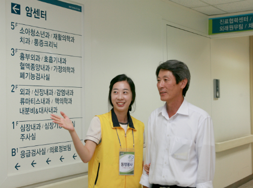 외래진료 환자들을 대상으로 8월부터 시작된 서비스는 병원을 처음 방문해 내부 지리에 어두운 초진환자들의 길안내를 도와주는 서비스다. 길안내는 직원이 아닌 학생 자원봉사자들이 담당한다. 병원은 친절한 안내를 위해 교육을 마친 봉사자들을 외래진료관 2층 종합안내창구에 배치했으며, 눈에 잘 띄도록 노란조끼도 입혔다. 얼마 전 타 지역에서 이주해와 병원방문이 처음이라는 전 모씨(남, 56세)는 “복잡한 병원 구조에 당황했으나 동행봉사자들의 친절한 안내와 설명으로 손쉽게 진료를 마칠 수 있어 좋았다”고 서비스 이용 소감을 말했다. 서비스 범위는 초진환자에만 국한된 것은 아니다. 거동이 어려운 노인환자나 장애우들도 도움을 요청하면 목적지까지 동행서비스를 제공한다. 이문수 병원장은 “33년간 병원규모가 조금씩 커졌기 때문에 환자 동선이 다소 길다”면서 “동행봉사서비스로 환자들의 불편이 조금이나마 줄어들기를 기대한다”고 말했다. 순천향대천안병원은 동행봉사서비스 외에도 ▲거동 불편 환자 전용 전동카트 운행을 비롯해 ▲우산무료대여, ▲주차대행 등 환자불편을 줄이기 위해 다양한 서비스를 실시 중이다. |