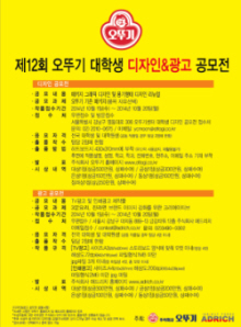 올해로 12회째를 맞는 이번 공모전은 디자인은 물론 대학생들의 신선한 아이디어를 반영한 광고 제작물을 공모하는 광고부문도 진행되며, 전국 대학생(휴학생 및 대학원생 포함)이면 누구나 자유롭게 참가 가능하다. 디자인 공모전은 오뚜기 기존 패키지 그래픽 디자인 및 용기형태 디자인을 리뉴얼해 출품하면 되고, 광고공모전은 3분요리, 진라면 TV광고 스토리보드 및 인쇄광고(잡지광고) 제작물을 출품하면 된다. 접수기간은 오는 10월 1일부터 20일까지며, 작품접수 및 공모전 관련 제반사항은 오뚜기 홈페이지를 통해 자세히 확인할 수 있다. 오뚜기 관계자는 “젊은 대학생들에게 창의력을 발휘할 수 있는 장을 마련하고, 오뚜기 디자인과 광고에 젊고 활기찬 이미지를 부여하기 위해 지난 2000년부터 공모전을 개최해오고 있다”며 “신선한 아이디어를 가진 많은 대학생들의 관심과 참여가 있을 것으로 기대한다”고 말했다. |