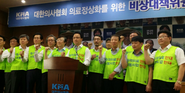 의협 비대위가 '많은 문제점이 도출돼 있는 원격의료를 반대한다'는 의지를 재확인하며, 대국민 홍보 및 강력한 대국회 활동에 나선다는 방침이다. 대한의사협회 의료정상화를 위한 비상대책위원회는 5일 오후 2시 의협 회관에서 기자회견을 열고 이 같이 밝혔다. 의협 비대위는 정부가 일방적으로 강행 추진하고 있는 원격의료 절대 반대 의견을 피력하고, 국민들에게 원격의료의 불안전성과 위험성을 알리기 위해 이 같은 자리를 마련했다. 의협 비대위는 "지금도 비대위를 중심으로 의협집행부, 대의원회, 16개 시도이사회 등 전 의료계가 원격의료 절대 반대의 목소리를 내고 있다"고 목소리를 높였다. 그러면서 "정부는 의료전문가 단체인 의협의 진정성 있는 의견을 묵살한 채 위험천만한 원격의료정책을 계속 일방통행식으로 추진하고 있다"며 "원격의료 분야를 미래 신성장동력의 중요한 정책으로 과장해 장밋빛 언론플레이만을 지속하고 있다"고 비난했다. 특히 비대위는 19대 국회가 마무리 되는 2016년 3월까지 원격의료 법안이 유효하기 때문에 11월과 12월이 가장 큰 고비가 될 것이라고 예상했다. 이에 그동안 투쟁을 위한 여러 자료를 준비했고, 11월과 12월 정부와 본게임을 치룬다는 계획이다. |