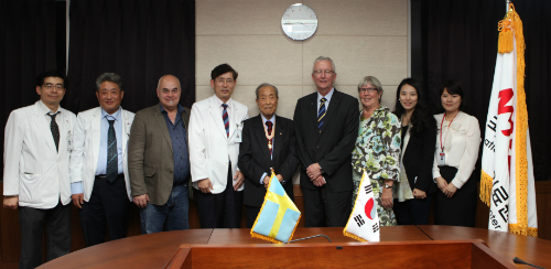 이번 행사는 스웨덴 측이 한국전과 스웨덴 참전, 그 후기를 다큐멘터리 영화로 제작하기 위한 목적으로 주한 스웨덴대사관의 요청에 의해 이뤄졌다. 특히 스웨덴은 1956년 정부와 국제연합한국재건단(UNKRA), 스칸디나비아(덴마크‧노르웨이‧스웨덴) 3국 대표자 간에 ‘중앙의료원의 설립과 운영에 관한 협정’을 체결하여 58년에 국립의료원을 개원한 이후 10년간 정부와 공동으로 운영한 바 있다. 이날 행사에는 라스 프리스크 장군(스웨덴군 영화협회 이사장)과 피터 노르스트롬 감독을 비롯해 NMC에서 58년 초대의료진으로 근무한 김종설 박사(92세‧심장내과 박사‧서울의대 1회 졸업생)가 참석해 56년의 지난 역사를 뛰어넘어 의료현장의 생생한 증언과 기록으로 남다른 감동을 자아냈다. 개원 당시부터 10년 간 한국인 내과 과장으로 근무한 김종설 박사는 당시 스웨덴으로부터 파견된 의료진들과의 깊은 인연을 떠올리며 “당시 스웨덴 의료진들로부터 정말 많은 가르침과 현장의 경험들을 배웠다”며 “진정한 인류애를 선사하고 떠난 이후로도 잊지 않고 한국을 다시 찾아 준 스웨덴인의 진정성에 깊은 감동을 받아 밤잠을 설치면서 여기에 왔다”고 소감을 밝혔다. 라스 프리스크 장군은 “너무 오래 전이라 당시 근무했던 한국의료진을 만날 수 있을까, 하는 의문과 걱정이 들었는데 이렇게 김 박사님을 만날 수 있게 된 것이 매우 감격스럽고 과거 스웨덴과의 추억을 이야기 할 수 있는 역사적으로도 중요한 시간이었다”고 말했다. 인터뷰에 이어 김종설 박사는 그 동안 소장하고 있던 50년대 당시의 귀한 사진들과 문서 등을 라스 프리스크 장군에게 모두 기증했다. 스웨덴군 역시 김 박사에게 기념품을 전달하며 훈훈함을 연출했다. 이어서 58년 당시 의료진의 숙소로 쓰였던 로하우스 건물(현 행정동)과 스칸디나비아 클럽(현 NMC가든), 라이프&헬스케어센터 등을 돌아보며 과거와 현재가 공존하는 NMC의 현장을 돌아보며 새로운 감회에 젖었다. 노동환 홍보팀장은 “국립중앙의료원을 설립·운영한 스칸디나비아 국가인 스웨덴과 초대의료진으로 활동하신 김종설 박사님을 한 자리에서 다시 모시게 되어 영광이며, 과거 스웨덴 등의 도움을 받았던 것처럼 우리 NMC 의료진도 여러 어려운 나라의 환자들을 도와 줄 수 있도록 노력하겠다”고 전했다. 이종복 부원장은 “앞으로도 이 분들의 헌신적인 의료봉사 정신과 NMC에 베풀어 주신 깊은 뜻을 잊지 않고, 어려운 환자들을 돕는데 앞장 설 수 있는 공공의료기관으로서의 역할에 최선을 다하겠다”고 밝혔다. |