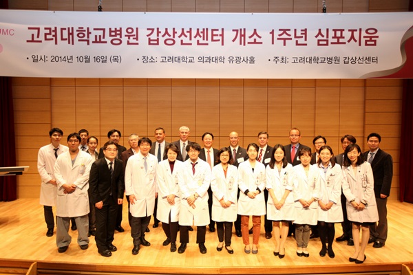 이번 심포지엄에는 병원 내 관련 의료진 뿐 아니라 외국의 석학들도 함께 참석해 자리를 더욱 빛냈다. 오후 4시부터 진행된 심포지움은 정광윤 갑상선센터장의 인사말을 시작으로 김영훈 안암병원장의 축사를 비롯해 ▲갑상선센터 개소 후 1년간 실적 ▲개소 1주년 기념 석학 강연 ▲갑상선센터의 새로운 진료 등 3가지 세션으로 진행됐다. 갑상선센터의 1년간 진료실적에 대해서는 이비인후과 정광윤 교수가, 1년간 연구실적은 내분비내과 김신곤 교수가 연설했다. 이후 석학 강연은 유방내분비외과 김훈엽 교수를 좌장으로 하버드대학교 Gregory Randolph 교수의 '미국갑상선학회 진료권고안 2014 - 갑상선 유두암에서 림프절의 중요성과 발견(ATA Guidelines 2014 - Significance and Detection of PTC nodes)', 존스홉킨스 대학 Ralph Tufano의 '갑상선 결절의 분자학적 검사와 갑상선암 2014 (Molecular Testing of Thyroid Nodules and Thyroid Cancer in 2014)' 강의가 이어졌다. 내분비내과 김신곤 교수를 좌장으로 진행된 '갑상선센터의 새로운 진료' 강의는 내분비내과 안지현 교수의 '갑상선 질환 - 증거에서 실제 임상까지 (Thyroid Disease, from Evidence to Clinical Practice)', 유방내분비외과 김훈엽 교수의 '갑상선암의 새로운 수술 방법과 기술 (New Surgical Approaches and Techniques for Thyroid Cancer)' 강의로 이뤄졌다. 지난 해 10월 개소한 갑상선센터는 갑상선 집중치료 Hi-pass 시스템을 도입해 내분비내과, 유방내분비외과, 이비인후과, 핵의학과, 영상의학과, 방사선종양학과, 병리과 등 7개 진료과 의료진과 협진하여 신속한 진료, 정밀한 진단 및 치료를 실시하고 있다. 특히 수술 후 흉터가 남지 않도록 내시경-로봇수술을 진행해 환자 만족도를 최고로 높이며 최선을 다하고 있다. |