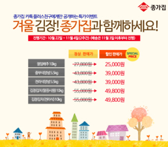 이번 이벤트는 간편한 김장을 도와주는 절임배추(10kg)와 깔끔한 맛의 중부식, 칼칼한 전라식으로 각각 구성된 김장양념(각 5.5kg), 깔끔하고 시원한 중부식 김장김치(10kg)와 전라식 김장김치(10kg)를 최대 10% 할인 판매하는 행사로 무료배송의 혜택까지 제공한다. 할인 판매는 11월 4일까지 주문이 가능하며, 배송은 김장 시즌인 11월 3일 이후부터 진행된다. 특가 이벤트 안내 메시지는 기존 종가집 카카오톡 플친은 물론 새로 친구를 맺는 모든 고객에게 제공된다. 또 별도의 쿠폰번호 입력 등의 번거로움 없이 카카오톡 플친으로 받은 메시지를 누르면 김장김치 할인 판매 페이지로 바로 연결돼 간편하게 제품을 주문할 수 있다. 대상FNF 문성준 팀장은 “본격적인 김장철에 접어들면서 주부들이 김장 걱정을 덜고 간편하게 준비할 수 있도록 김장김치 할인 이벤트를 기획했다”며 “앞으로도 소비자와 소통할 수 있는 SNS 통로를 활용해 종가집 제품을 접할 수 있는 혜택을 확대해 나갈 것”이라고 전했다. |