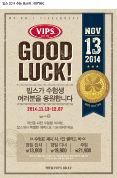 프리미엄 스테이크 하우스 빕스는 수능 당일인 13일부터 12월 7일까지 ‘빕스 수험생 가격제’를 선보인다. 수능 수험표를 제시하면 기존보다 최대 33% 할인된 가격으로 1인 샐러드 바를 즐길 수 있다. 수험표를 제시한 본인에 한해 이용가능하며 타 쿠폰 및 제휴 할인 중복은 불가하다. 색다른 차이니즈 레스토랑 차이나팩토리는 오는 13일부터 12월 12일까지 수험생을 위해 매장별로 특별한 혜택을 제공한다. 강남역점, 올림픽공원점 등 7개 매장에서 수험표를 제시하면 1인 무료 혜택을 받을 수 있다. 수험생 본인을 제외한 성인 2인 이상 동반 시 적용된다. 또 같은 기간 내 판교 아비뉴프랑, 부산 서면 롯데백화점 등에 입점한 캐주얼 콘셉트의 딜라이트 매장에서는 수험표를 내면 깐풍기를 50% 할인된 가격에 맛 볼 수 있다. 이탈리안 캐주얼 레스토랑 더플레이스은 13일부터 11월 말까지 수험표를 제시한 모든 수험생들에게 30% 할인 행사를 진행한다. 광화문점, 강남역점 매장에서 진행하며 주문 전 수험표를 보여주면 된다. 할인은 테이블 당 1회 적용되며 타 쿠폰 및 제휴 할인 중복은 불가하다. |