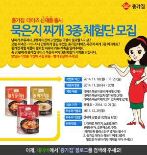 응모방법은 종가집 블로그내 이벤트 페이지를 스크랩 한 후 ‘종가집데이즈 묵은지 찌개 3종’이 필요한 이유와 리뷰계획을 댓글로 남기면 된다. 추첨을 통해 총 20명에게 신제품을 체험할 수 있는 기회를 제공하며, 당첨자는 오는 26일에 발표한다. 선정된 체험단이 체험하게 되는 ‘데이즈 묵은지 찌개 3종’은 콩비지의 구수하고 깊은 맛을 느낄 수 있는 ‘묵은지 콩비지찌개’, 담백한 참치를 넣은 ‘묵은지 참치 김치찌개’, 돼지고기와 묵은지로 맛의 조화를 이룬 ‘묵은지 돼지고기 김치찌개’ 등 3종으로 구성됐다. 대상FNF 박진아 매니저는 “다양한 맛의 묵은지 찌개를 간편하게 만들 수 있는 ‘묵은지 찌개 3종’ 출시를 기념해 소비자들이 직접 맛보고 체험해 볼 수 있도록 체험단을 진행한다”며 “소포장이라 1인분 요리가 번거로운 1인 가구나 맞벌이 가정에서 인기를 얻을 것으로 기대된다”고 말했다. |