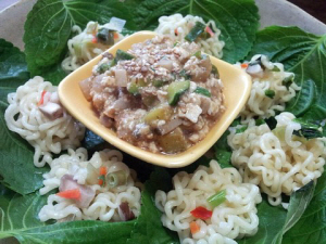 ‘쌈라면’의 경우 쌈밥 뺨치는 비주얼과 맛, 거기에 낮은 칼로리로 다이어트 중인 여성들도 라면을 즐길 수 있다는 것이 매력이다. 우선 맛의 포인트인 쌈장은 강된장에 양파, 호박, 두부, 새송이버섯, 마늘을 잘게 다져넣고 라면 스프 반개와 들깨가루를 버무려 만든다. 그리고 멸치와 다시마 육수에 꼬들꼬들한 면발의 진라면을 끓여서 찬물에 헹군다. 다음 깻잎 위에 한입 크기 라면을 얹은 뒤 쌈장을 얹혀 먹으면 맛이 일품이다.