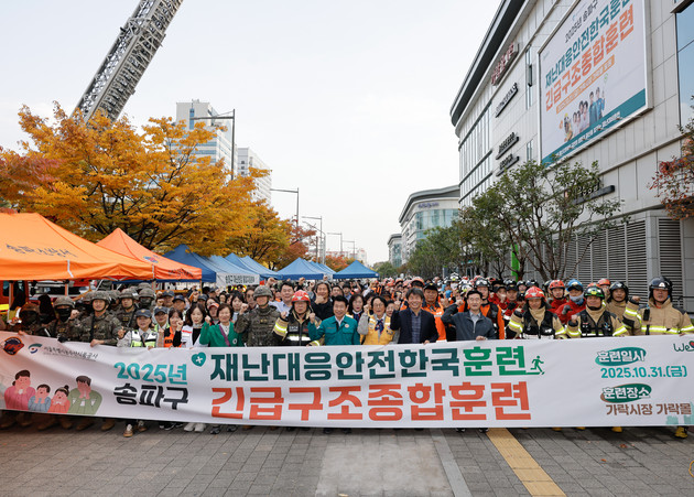 서울시농수산식품공사(사장 문영표, 이하 '공사')는 지난 10월 31일 송파구청, 송파소방서 등 15개 유관기관과 합동으로 '2025년 송파구 재난대응 안전한국훈련 및 긴급구조종합훈련을 실시했다.
