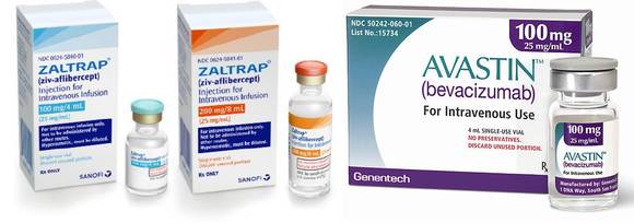 ▲대장암 표적항암제로 사용되는 '잘트랩(좌)'과 '아바스틴(우)'