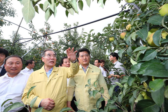 이 장관은 빈발하는 재해에 대응해 농가 보호를 위해 현장에서 개선요구가 많은 ‘과수(사과·배 등) 봄 동상해 특약’과 ‘폭염 일소피해 특약’ 등의 주계약 전환과 농가의 보험료 부담완화 방안을 적극 검토하겠다고 밝혔다.