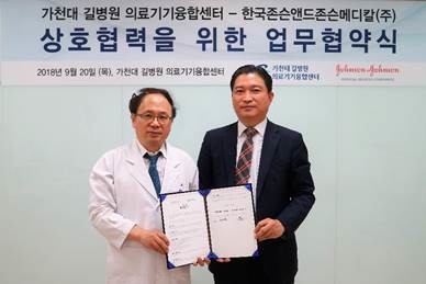 한국존슨앤드존슨메디칼 에티콘(ETHICON) 사업부가 지난 20일 가천의료기기융합센터와 상호 협력을 위한 업무협약(MOU)을 체결했다.
