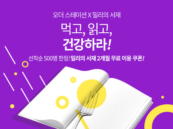 ‘먹고, 읽고, 건강하라!’는 콘셉트의 이번 프로모션은 몸에 좋은 건강한 음식은 오더 스테이션에서, 마음의 양식은 밀리의 서재에서 채우라는 의미를 지니고 있다.