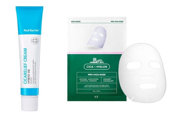 브이티 코스메틱 ‘VT 프로 시카 마스크 팩’ 건조한 피부를 진정시켜주는 시카리오 성분과 수분 장벽을 강화하는 시카 히알론을 더해 메마른 피부에 수분을 공급해준다. 또한 부드러운 저자극 소재의 시카 거즈 쌀 시트를 적용해 밀착력을 높였고 에센스를 효과적으로 머금고 있어 피부 자극을 최소화하고 수분을 효과적으로 전달해준다.
