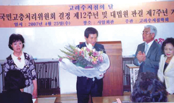 또 대법원 판결과 국고충의 결정이 있기까지 피나는 노력을 했던 정인화 춘천지회장, 양성순 학술위원 등이 지난 과정을 되돌아 보면서 학회의 발전을 기원하는 인사말을 했고, 참석자들은 모두 서금요법의 영원함을 기원하는 박수갈채를 보냈다. 기념식에 이어서 육근순 학술위원이 서금요법(황토서암뜸)으로 호전시킨 자신의 유두암 시술사례를 발표해 참석자들의 주목을 받았다. 3부 순서에서는 참석자 및 모든 회원들이 이날을 항상 기억하고, 학회의 발전을 위한 건배를 했고 더욱 풍성하고 뜻 깊은 하루가 됐다. |