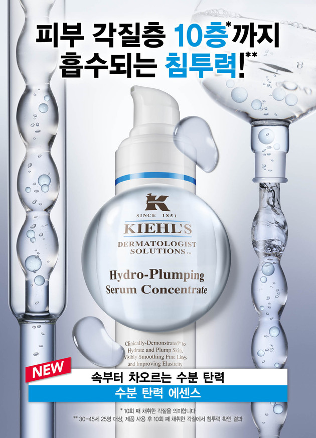 키엘의 이번 신제품은 건조하고 탄력을 잃은 피부에 속부터 수분을 가득 채워 생기 있고 탄탄하게 가꿔주는 수분 에센스다.
