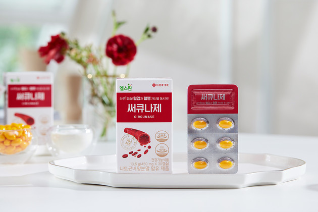 롯데 헬스원 관계자는 “써큐나제는 기존 롯데헬스원의 혈압컨트롤N 나토키나제에서 ‘혈행 개선’ 기능성이 추가된 업그레이드 된 제품”이라 밝히며, “써큐나제에는 피브린(혈전) 용해 효소가 2000FU 들어있고, 단 1캡슐로 혈압과 혈행 개선에 도움을 줄 수 있는 건강기능식품”이라고 설명했다.