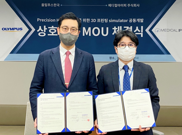 인공지능(AI) 3D프린팅 전문기업 메디컬아이피㈜(대표 박상준)가 글로벌 의료기업 올림푸스한국(대표 오카다 나오키)과 ‘Precision Healthcare를 위한 3D프린팅 시뮬레이터 공동 개발’ MOU를 체결했다고 2일 밝혔다.