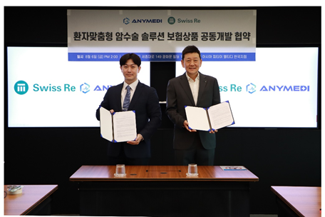스위스재보험은 최근 성장하고 있는 환자 맞춤형 수술 솔루션 시장과 AI 기반 혁신의료 기술에 주목해 FDA 인증 등으로 고난도 암 수술 맞춤형 솔루션 분야의 기술력을 인증받은 애니메디솔루션과의 협업을 통해 자사의 신규 보험 상품 개발 및 서비스 고도화에 활용할 계획이다.