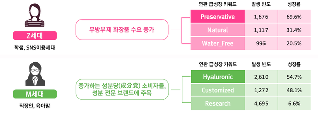 Z세대 무방부제 천연성분 선호… M세대는 히알루론산·프로바이오틱스 주목