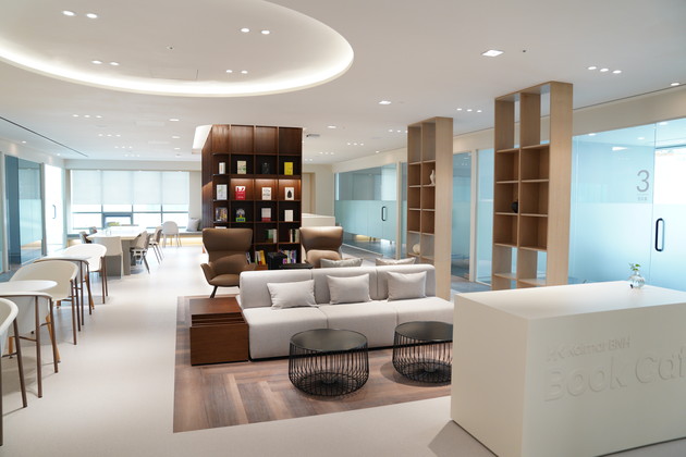 신사옥은 지상 15층 지하 3층, 연면적 약 2689㎡ 규모로 업무 효율성을 높이고 소통공간을 확대한 스마트 워크 빌딩으로 구성했다. 특히 북카페에는 1000여권의 서적을 비치해 독서 경영 철학을 구현했으며 오픈 이노베이션을 위한 사무 공간으로 파티션을 없애고 워킹라운지(Working Lounge)를 구성한 것이 특징이다.