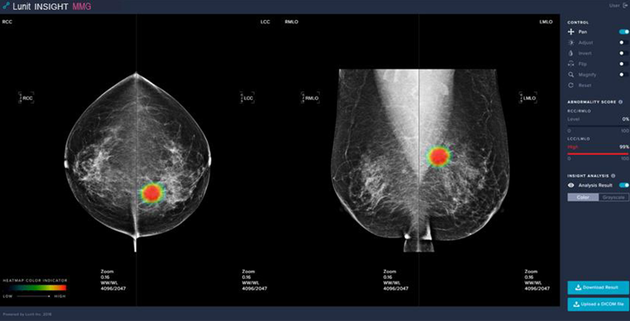 약 18만건의 유방촬영 영상을 학습데이터로 사용한 이 제품은 △악성 병변의 검출 정확도를 높이고 위양성 병변의 검출 빈도를 줄였고 △특히 혁신적 기술로 동양 여성에게 많으나 영상판독이 어려운 치밀형 유방의 판독 오류를 최소화했으며 △15초 내외의영상 분석 시간으로 의료진의 진단을 신속하게 보조할 수 있는 장점이 있다.