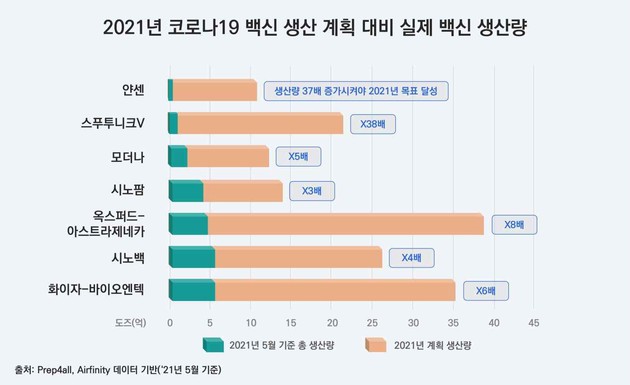 아울러 여러 백신기업들이 2021년에 120억도즈 이상을 생산하겠다는 계획을 갖고 있으나 목표 달성이 어려울 것으로 예상했으며, 목표 달성을 위해서는 현재 생산량의 평균 6배 이상을 생산해야 한다고 분석했다.