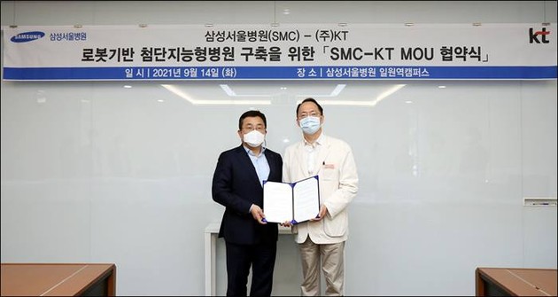 삼성서울병원(원장 권오정)과 KT(대표이사 구현모)는 '로봇기반 첨단지능형병원(Robot-driven Smart Hospital)' 구축을 위한 업무협약(MOU)을 체결했다고 15일 밝혔다.