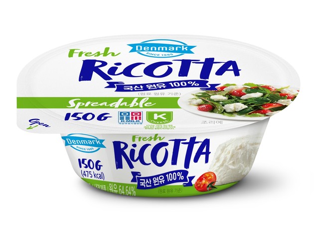 ‘덴마크 리코타치즈’는 국산 원유를 사용한 유제품에 부여되는 한국낙농육우협회의 ‘K-MILK’ 인증을 획득한 자연치즈 제품으로, 신선한 원유의 고소한 풍미가 그대로 담겨있다. 치즈 제조 시 우유로부터 나오는 유청을 한번 더 끓여내는 리코타치즈 정통 생산방식을 재현해 부드러운 식감과 담백한 맛은 물론 단백질 등 다양한 영양소를 함유하고 있다.