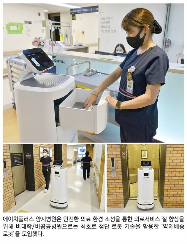 에이치플러스 양지병원(병원장 김상일)은 비대학·비공공 병원으로는 최초로 첨단 로봇 기술을 활용한 '약제배송 로봇'을 도입, 본격 가동한다고 13일 밝혔다.