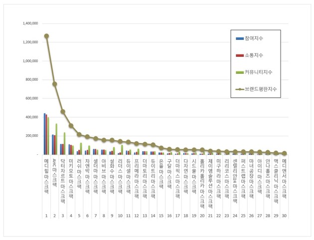 한국기업평판연구소(소장 구창환)는 9월 13일부터 10월 13일까지의 마스크팩 브랜드 빅데이터 494만2352개를 분석해 이 같은 결과를 13일 발표했다.