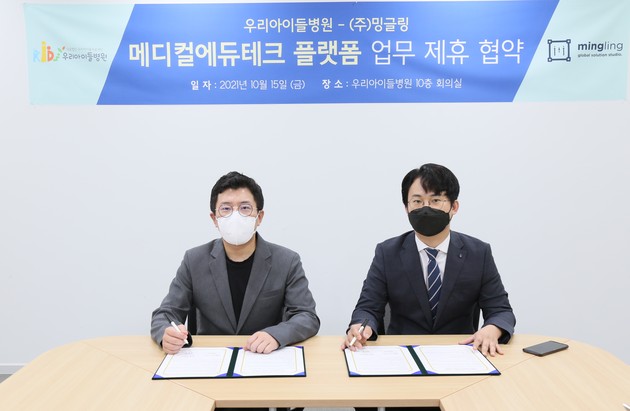 우리아이들 의료재단(이사장 정성관)은 15일 밍글링(대표 전창열)과 소아청소년을 위한 '메디컬 에듀테크 프로젝트'를 위한 업무협약(MOU)을 체결했다고 밝혔다.