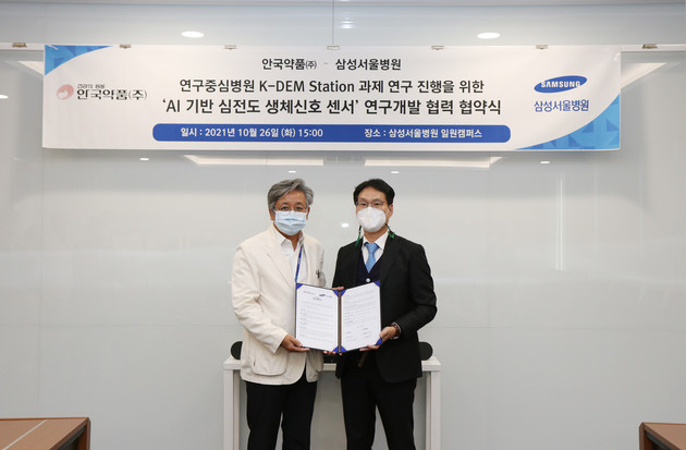 삼성서울병원 디지털치료연구센터와 안국약품은 연구중심병원 K-DEM Station 과제 연구 진행을 위한 ‘AI기반 심전도 생체신호 센서 개발’ 업무협약(MOU)을 체결했다.
