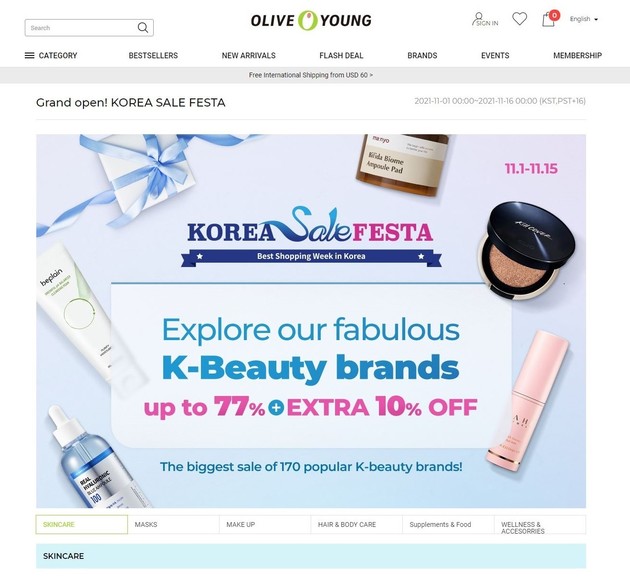 올리브영은 1일부터 시작하는 ‘2021 코리아세일페스타’와 연계 ‘K뷰티 특별 판촉전’을 진행한다. K뷰티 세계화를 위해 KOTRA와 추진 중인 협력사업의 일환이다.