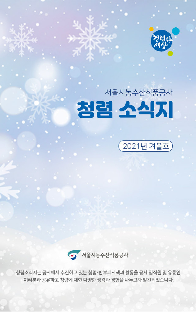 서울시농수산식품공사(사장 김경호, 이하 ‘공사’)는 2021년 모바일 청렴 소식지 겨울호를 15일 발간했다.