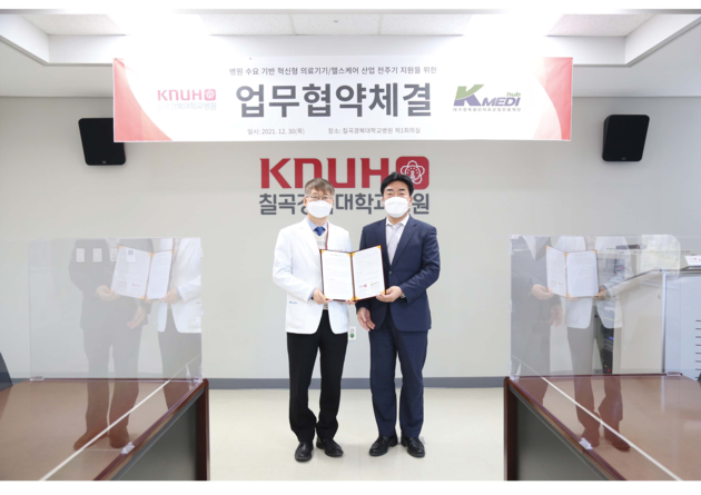 양진영 케이메디허브 이사장은 “칠곡경북대병원과 손잡고 병원 현장에 기반한 의료기기와 헬스케어를 개발하는 시너지를 만들 것”이라고 밝혔다.
