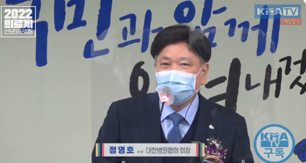 코로나 현장에서의 어려움도 강조했다. 정 회장은 "백신접종 본격화와 치료제 개발 등으로 일상회복을 위한 노력을 기울여 보고 있지만, 아직은 시간이 더 필요해 보인다"면서 "코로나19 장기화로 근무 인력의 피로도가 누적되고 있으며, 인력과 병상 부족으로 이어지고 있다. 의료체계의 붕괴까지도 우려해야 하는 급박한 상황에 직면하는 중"이라고 토로했다.