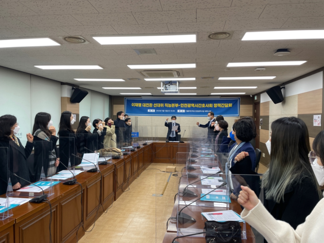 대한간호협회 인천광역시간호사회(회장 장성숙)는 12일 더불어민주당 인천광역시당 세미나실에서 이재명후보 대전환 선대위 직능본부와 정책간담회를 가졌다.