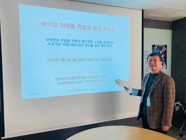 한국신약개발연구조합(이사장 홍성한)은 여재천 사무국장이 지난 7일 한국기계연구원 간부회의실에서 '바이오 의약품 개발과 생산 자동화'를 주제로 강연과 간담회를 가졌다고 밝혔다.