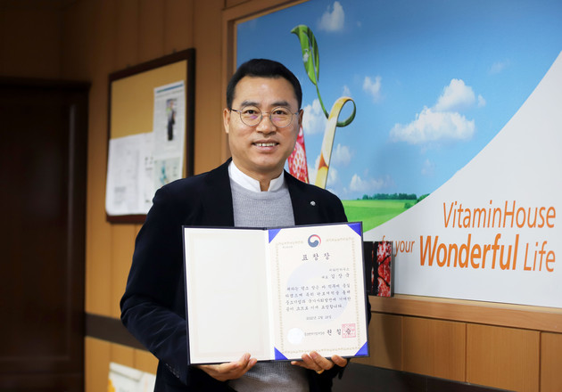 건강기능식품 전문기업 비타민하우스의 김상국 대표가 '중소기업 판로·마케팅 공로'를 인정받아 중소벤처기업부 장관 표창을 수상했다.