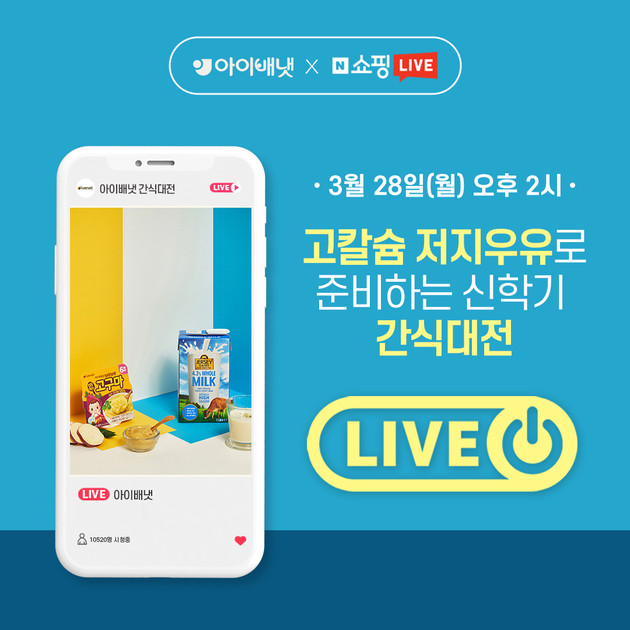 아이배냇이 28일 오후 2시부터 3시까지 네이버 쇼핑 라이브 채널에서 '저지우유로 준비하는 신학기 간식대전' 라이브 방송을 진행한다.