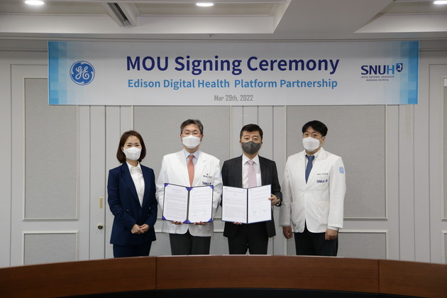 지난달 29일 양 기관은 백남종 병원장, 이호영 정보화실장, 유수영 헬스케어ICT센터장을 비롯해 GE헬스케어 아세안 강성욱 대표, GE헬스케어 코리아 김은미 대표 등이 참석한 가운데 업무협약(MOU)을 체결했다.
