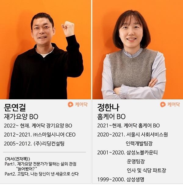 이에 케어닥은 2022년을 홈케어 사업의 원년으로 삼으며, 지난해부터 조직 및 인력 재정비에 돌입했다. 그 일환으로 홈케어 본부를 만들어 조직화했고, 재가요양 전문가인 문연걸 장기요양 BO(Business Owner)와 실버산업 서비스 전문가인 정한나 홈케어 BO(Business Owner)를 새롭게 영입했다.