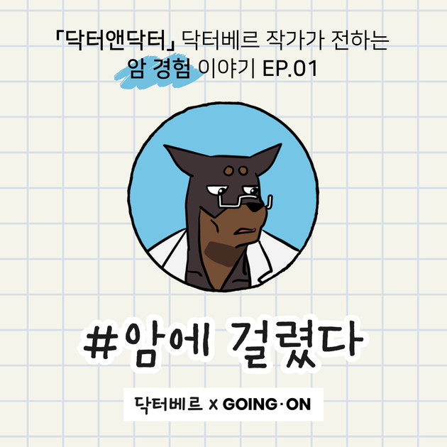 닥터베르 작가는 서울대학교 에너지시스템공학 박사이자 웹툰 작가로, 박사과정 중 3년간 '육아 휴학'한 경험을 담아 웹툰을 연재했다. 이번 고잉 온 웹툰은 젊고, 꿈도 많고, 열정적이었던 닥터베르 작가 본인의 암 경험담을 진솔하게 담아냈다.